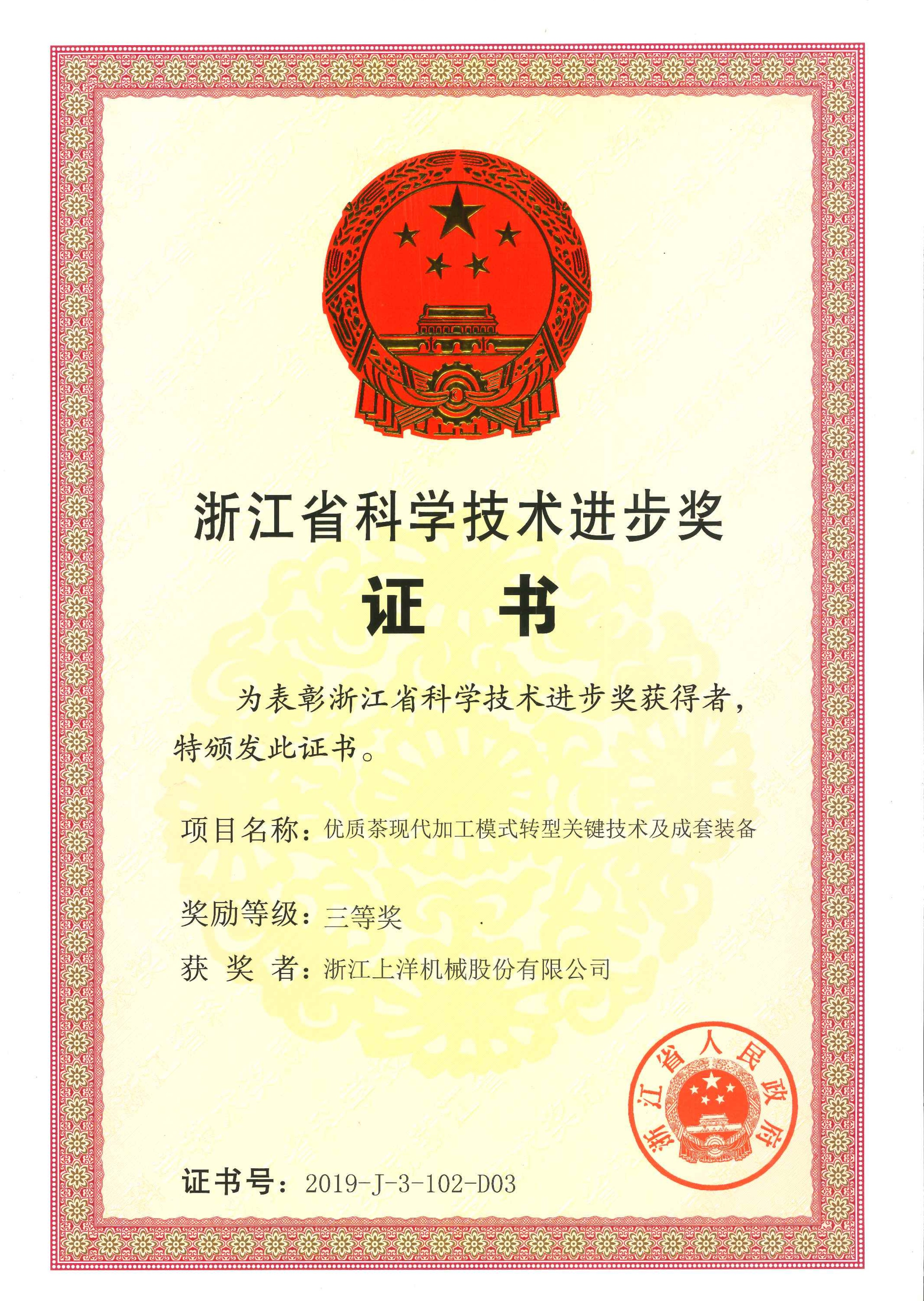 2020年浙江省科技進(jìn)步三等獎(jiǎng)